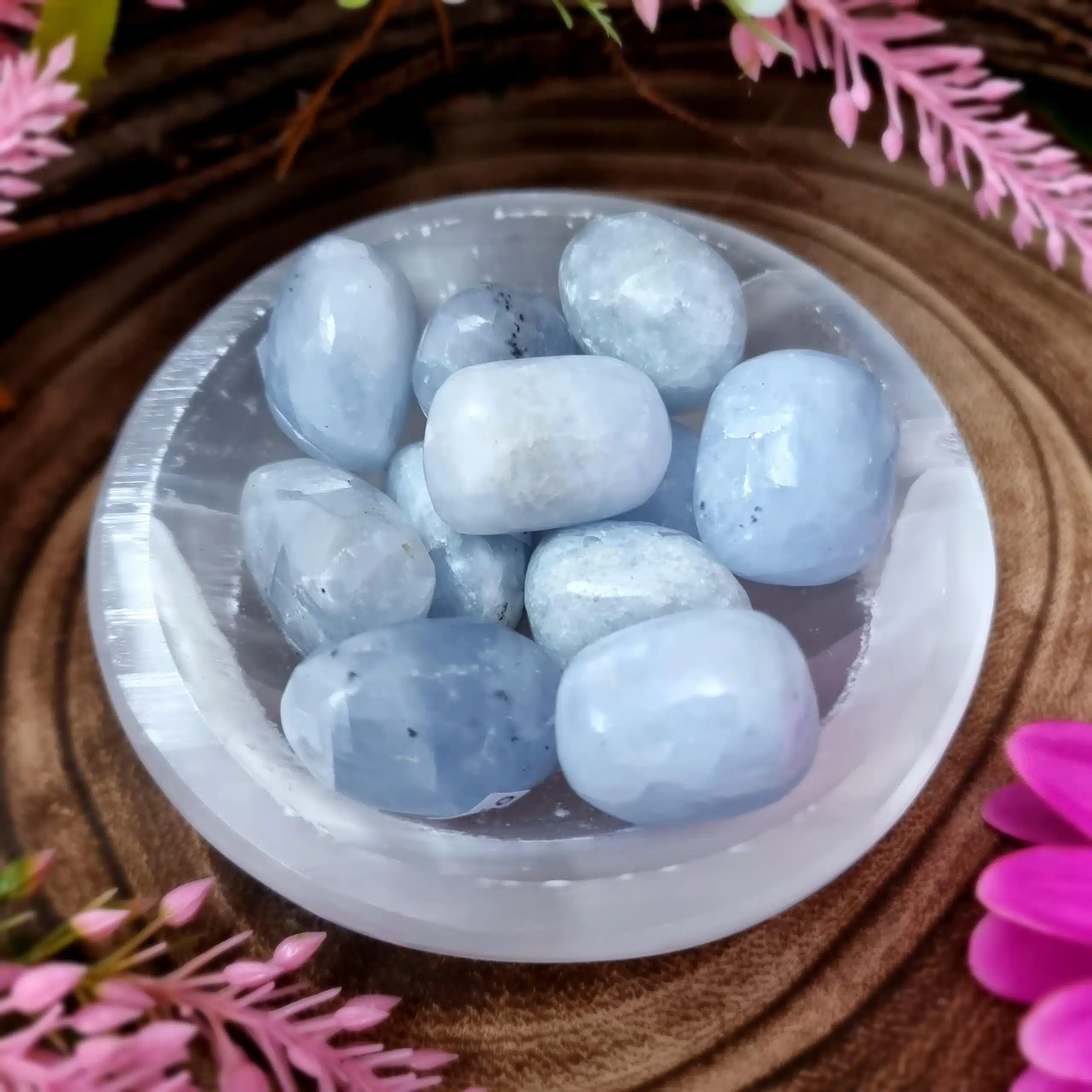 - Blue Calcite Crystal Tumblestone offers a wealth of healing benefits, especially for those seeking emotional clarity and mental calm. Known for its soothing energy, this beautiful stone helps reduce anxiety and stress by gently clearing negative emotions and replacing them with peace and serenity. Rather than absorbing negativity, Blue Calcite transforms it into uplifting energy, making it a powerful companion for emotional healing.
