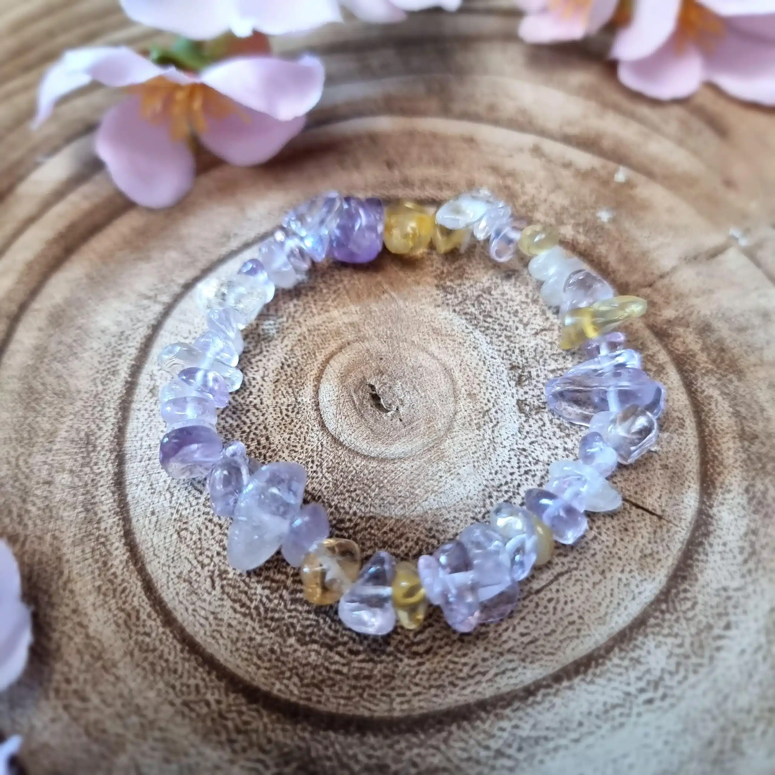 Elasticated chip bracelet made from ametrine crystal