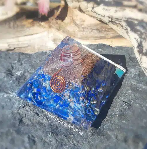 Its orgone generator powers the pyramid with life-force energy, revitalizing and refreshing the surrounding atmosphere, promoting emotional wellness and mental clarity. Lapis Lazuli, revered since ancient times, fosters wisdom, truth, and enlightenment, making this pyramid a powerful holistic tool.