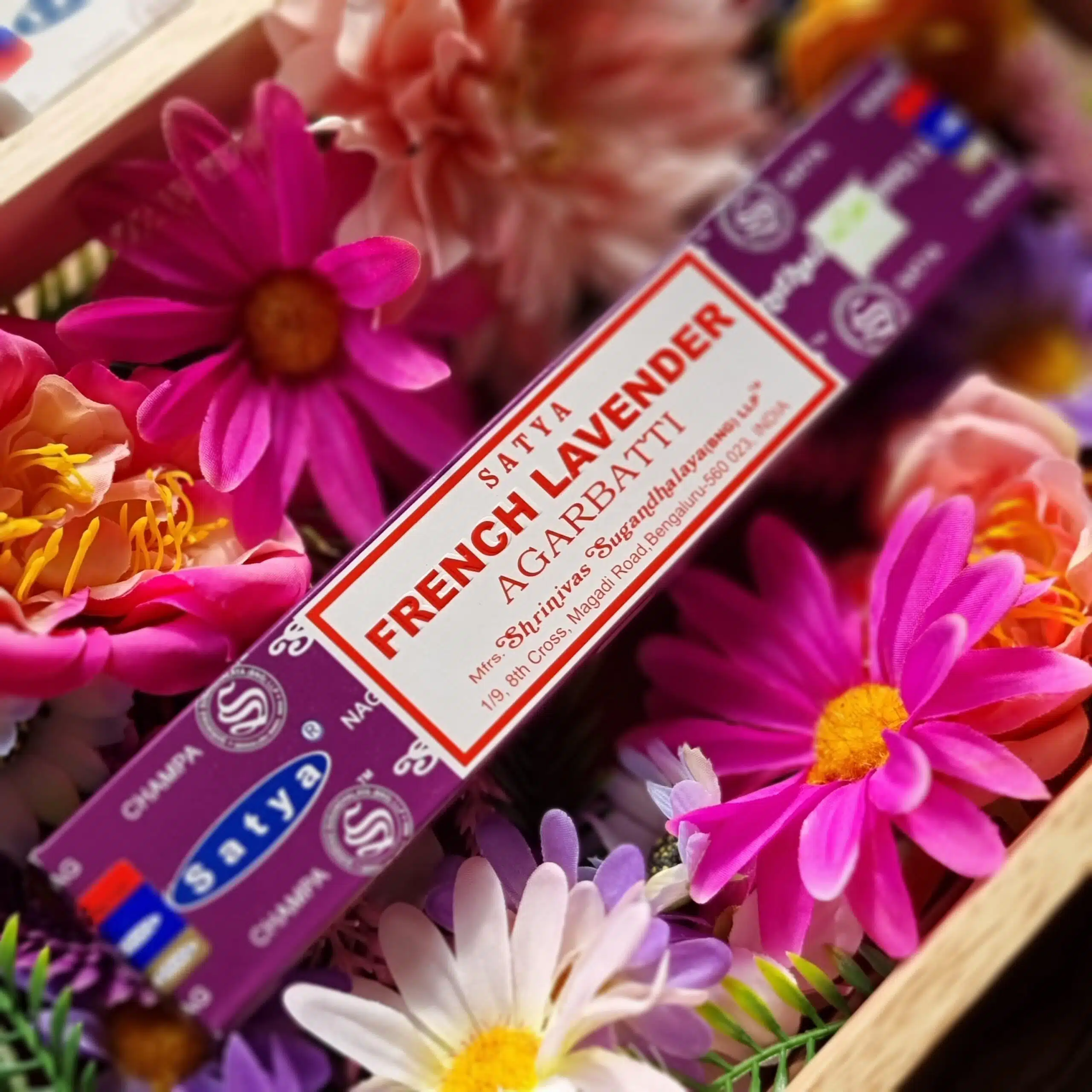 Introducing Satya Incense – French Lavender. This delightful fragrance brings tranquility and relaxation straight into your home.